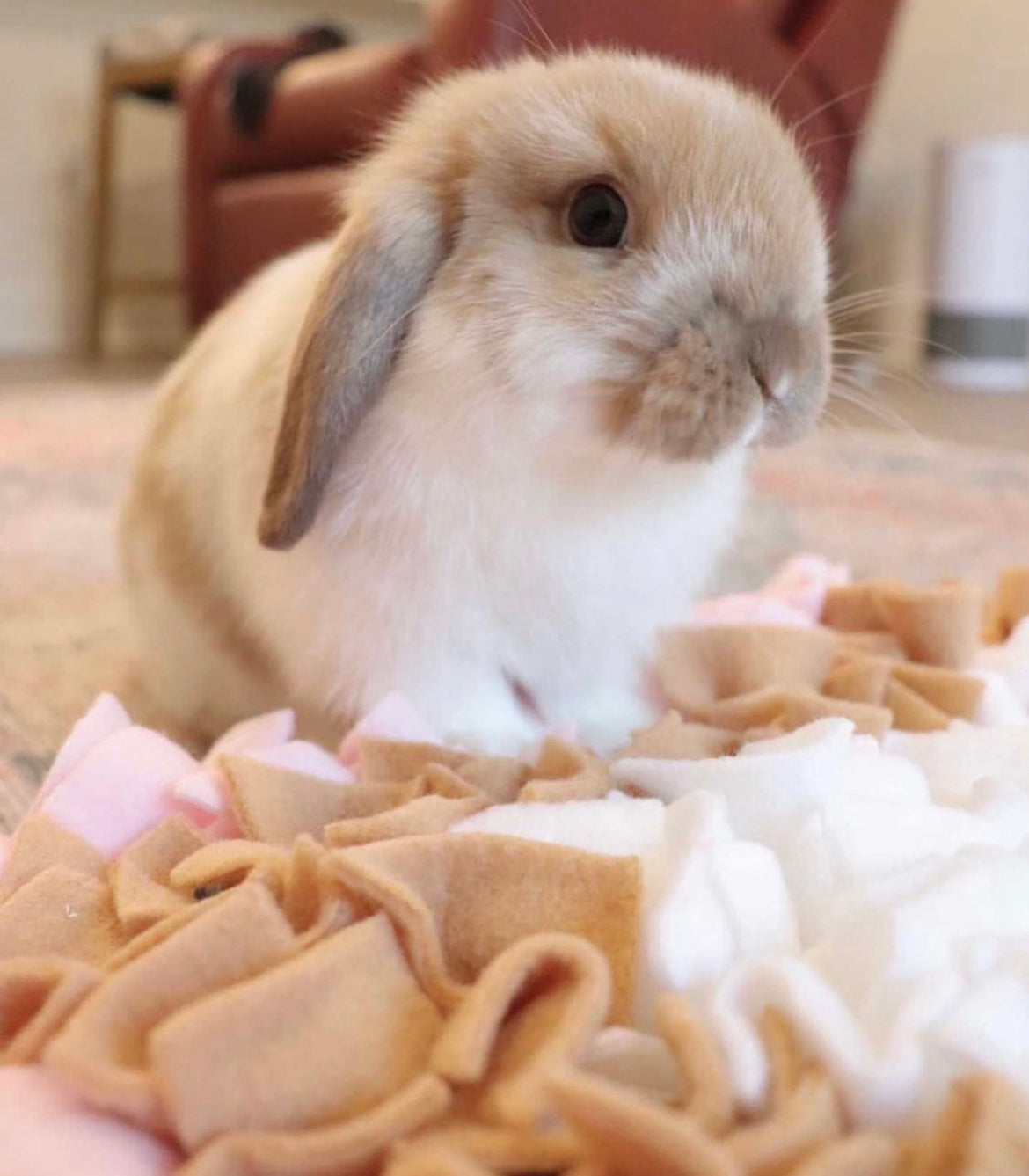 Frappawcino Plush Forager Snuffle Toy & Aesthetic Fleece Slow Feeder Puzzle For Rabbits